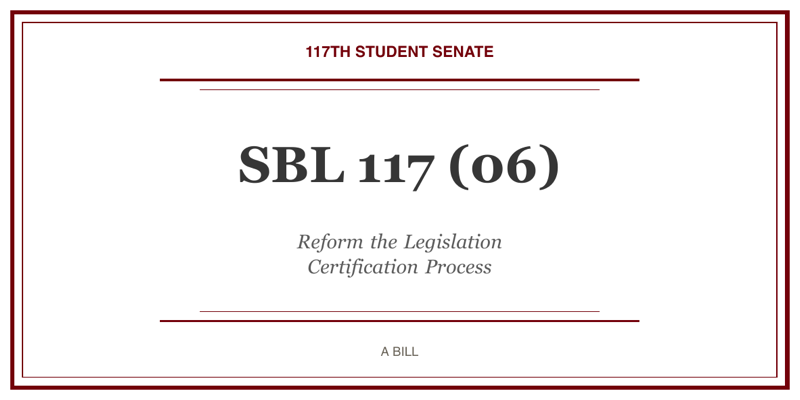 Legislation authored and sponsored by Common Sense Carolina members in the 117th Student Senate.
